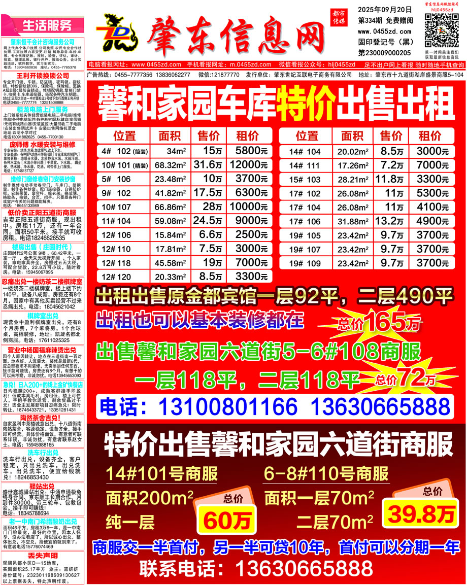 肇東信息網(wǎng)DM報(bào)紙2025年9月20日第334期