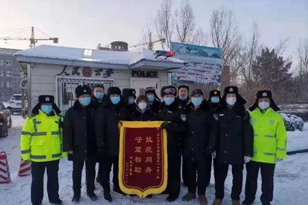 2月1日,哈大高速公路肇東卡口收到于某母子贈送的錦旗,上面印有“抗疫同舟,守望相助”,對卡口執(zhí)勤民警雪中送炭、熱心幫助的擔當作為表達了感激之情。