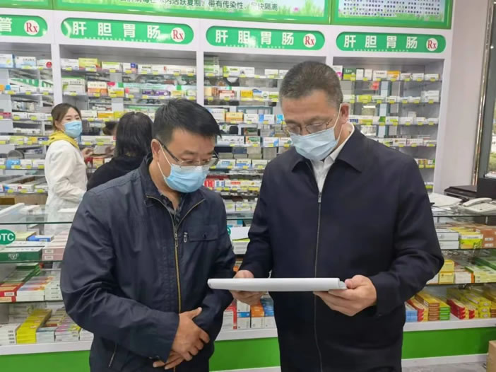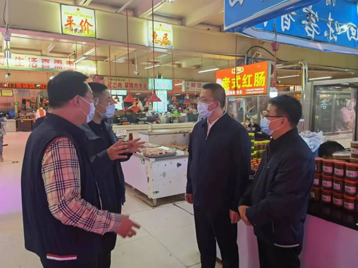 單奎副市長一行重點(diǎn)檢查了餐飲、藥店以及鴻泰水果批發(fā)市場、陽光農(nóng)貿(mào)市場等業(yè)態(tài),對(duì)各場所進(jìn)門測溫、掃碼、戴口罩以及消殺等防控措施執(zhí)行情況進(jìn)行了細(xì)致檢查。