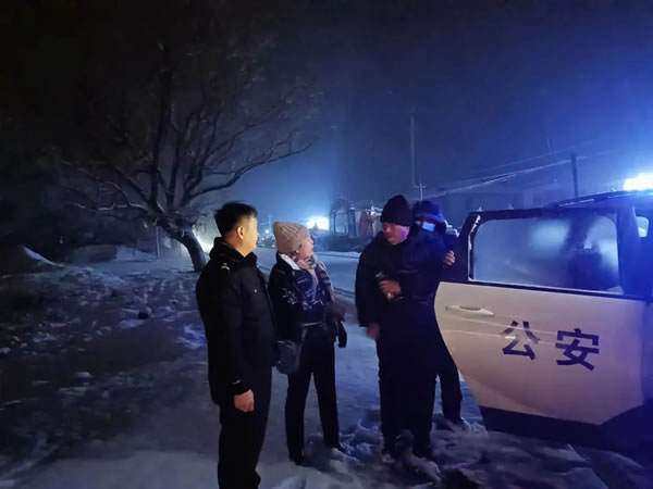3月14日晚9時(shí)許,天空飄著鵝毛般的大雪,安民派出所接到群眾報(bào)警稱:“在安民鄉(xiāng)安民村李家圍子屯,301國道東側(cè),有一名頭戴黑色帽子,身穿黑色棉服和黑色褲子的男子,不知道什么原因躺在路邊”,接到報(bào)警后,民警楊忠孝立即帶領(lǐng)輔警張興宇趕赴報(bào)警現(xiàn)場,經(jīng)過現(xiàn)場了解,發(fā)現(xiàn)該人為智障人員,無法準(zhǔn)確有效地表達(dá)個(gè)人信息,且身上也沒有任何能證明身份信息的證件,具體住址也說不清楚。只能斷斷續(xù)續(xù)的表達(dá)自己和母親的名字,但無法提供聯(lián)系方式,經(jīng)過民警再三溝通,他說是在廣場上扭秧歌,扭完后想回家,在經(jīng)過一個(gè)天橋后,迷失了方向,就走到這來了。民警楊忠孝分析,該人應(yīng)該是從市區(qū)來的,因?yàn)樗岬教鞓,安民所轄區(qū)最近的城市就是安達(dá)市,他應(yīng)該是從安達(dá)市方向來的,將群眾領(lǐng)到安民派出所后,輔警張興宇為他買了熱乎的食物并安撫其情緒,通過工作得知該人叫郭某東是安達(dá)市朝陽區(qū)居民,楊忠孝立即與安達(dá)市朝陽派出所取得聯(lián)系,安達(dá)市朝陽派出所工作人員表示,郭某東的父母已向派出所報(bào)警,說孩子已走失一下午了,父母很著急,我們這邊也出動(dòng)警力正在幫忙尋找,民警楊忠孝與他的父母取得聯(lián)系后,告知人已安全找到,看著天空飄下的大雪,楊忠孝決定和張興宇用警車把郭某東安全送回家里,以免發(fā)生其他意外。