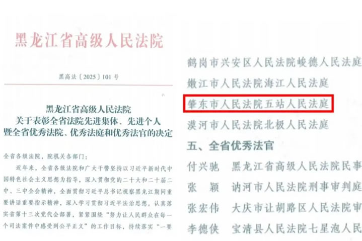 近日,黑龍江省高級人民法院公布《關(guān)于表彰全省法院先進集體、先進個人暨全省優(yōu)秀法院、優(yōu)秀法庭和優(yōu)秀法官的決定》,肇東市人民法院五站人民法庭獲評“全省優(yōu)秀法庭”表彰。
