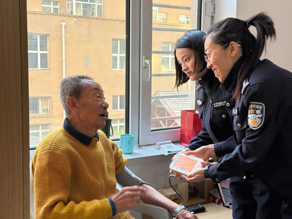 重陽(yáng)節(jié)來(lái)臨之際,肇東市公安局反詐中心和奮斗派出所民輔警來(lái)到肇東市眾親養(yǎng)老院,給老人們送上了特殊的“節(jié)日安全”,用“警察藍(lán)”守護(hù)“夕陽(yáng)紅”。民輔警從出行平安到財(cái)產(chǎn)安全,全方位為“銀齡老人”筑起安心屏障。