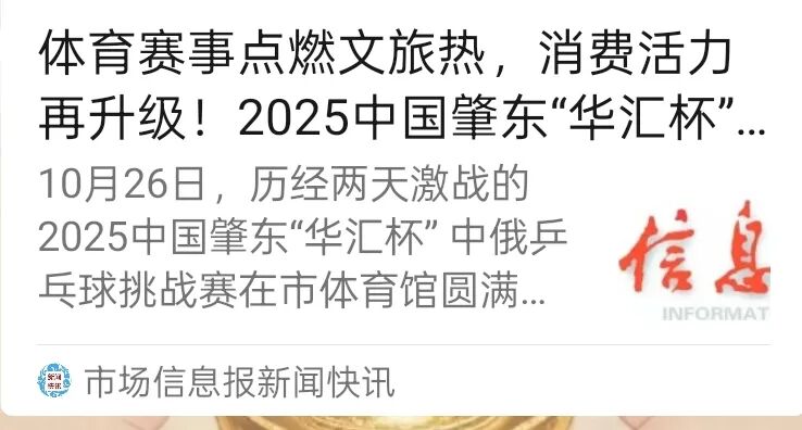 近日,肇東市以系列精品賽事為核心的文體旅融合發(fā)展模式引發(fā)多家媒體集中關(guān)注,今日頭條、騰訊新聞、搜狐新聞、百度、市場(chǎng)信息報(bào)信息快訊等多家媒體相繼聚焦其賽事經(jīng)濟(jì)成效進(jìn)行專題報(bào)道,讓肇東“以賽促游、以游興城”的發(fā)展故事成為矚目焦點(diǎn),賽事經(jīng)濟(jì)成為城市的新名片。
