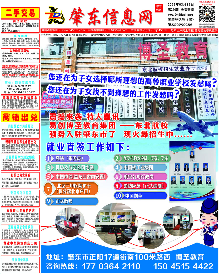 肇東信息網(wǎng)DM報紙2022年3月12日第270期