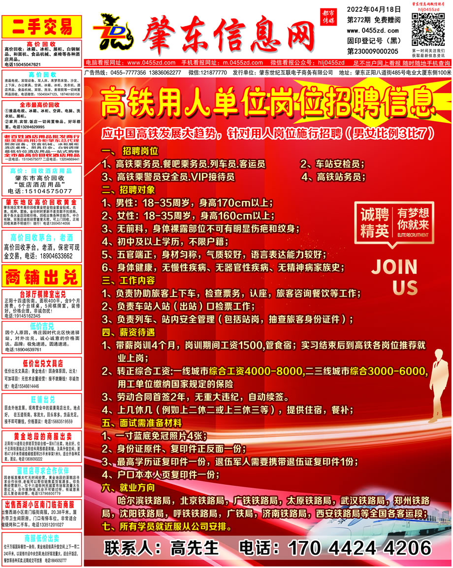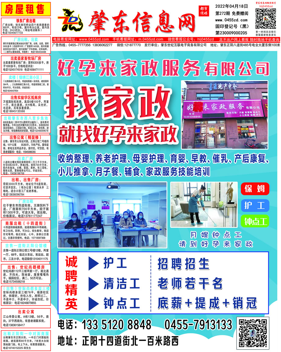 肇東信息網(wǎng)DM報紙2022年4月18日第272期