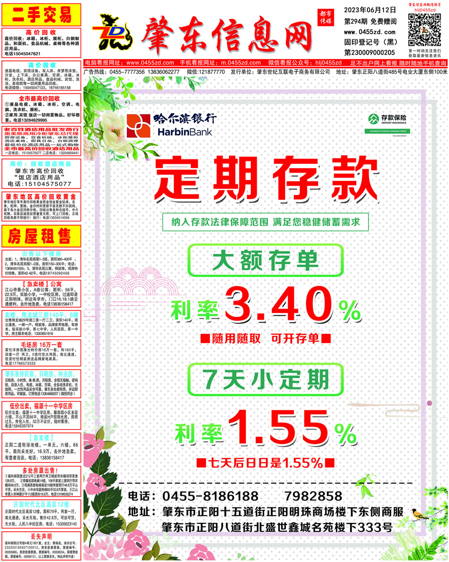 肇東信息網(wǎng)DM報(bào)紙2023年6月12日第294期