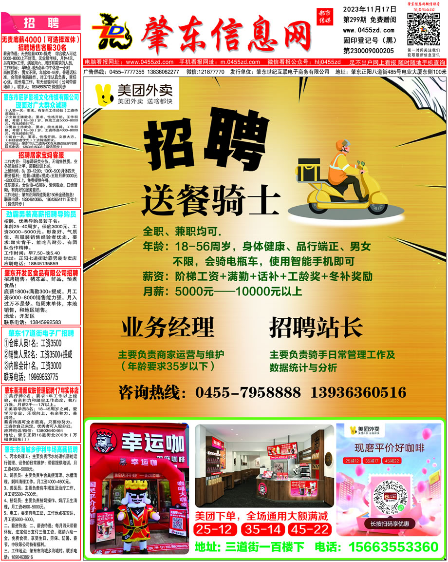 肇東信息網(wǎng)DM報紙2023年11月17日第299期
