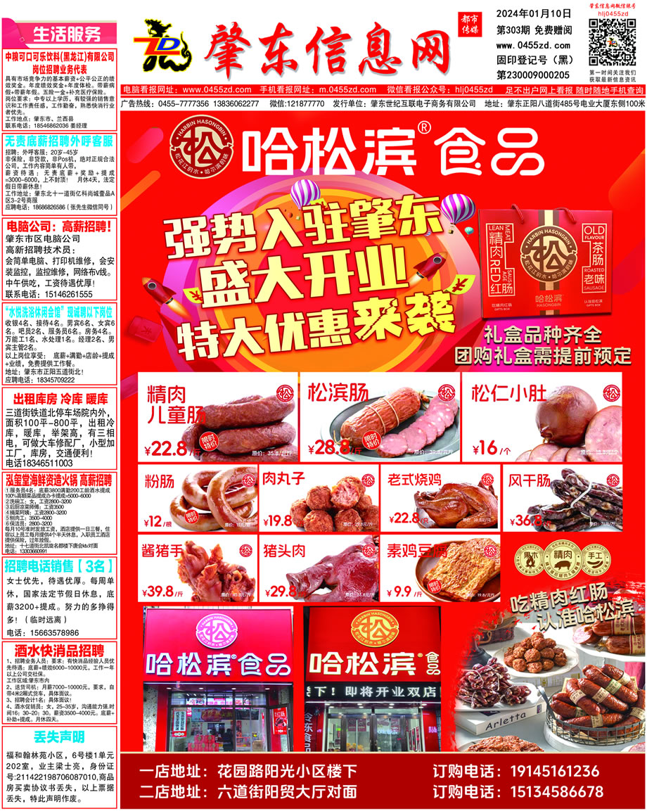 肇東信息網(wǎng)DM報紙2024年1月10日第303期