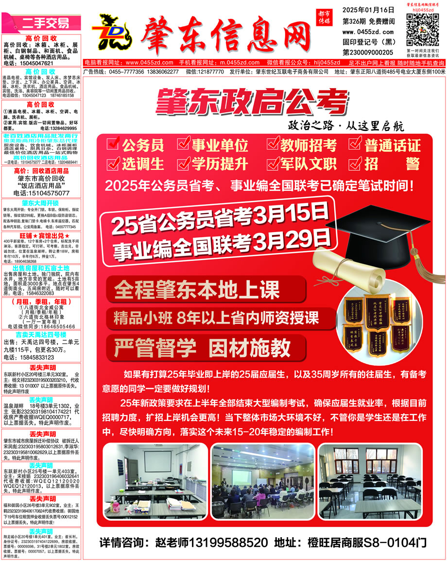 肇東信息網(wǎng)DM報紙2025年1月16日第326期
