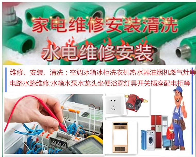 ①維修安裝清洗:空調(diào)、洗衣機、熱水器、水箱、油煙機、冰箱、冰柜、燃?xì)庠畹取?/span>