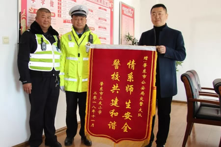 11月16日,肇東市三友小學(xué)黨支部副書(shū)記董潤(rùn)生、副校長(zhǎng)夏志軍一行三人來(lái)到市公安局交警大隊(duì),送上一面寫(xiě)有“情系師生安全、警校共建和諧”的錦旗和感謝信,盛贊交通民警...