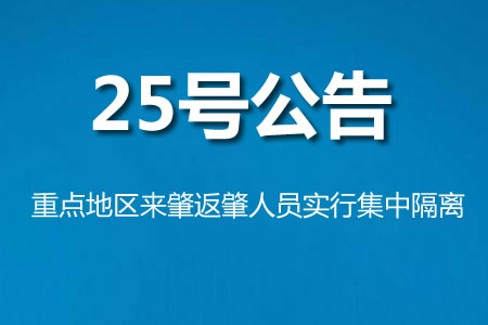 關于對重點地區(qū)來肇返肇人員實行集中隔離的公告