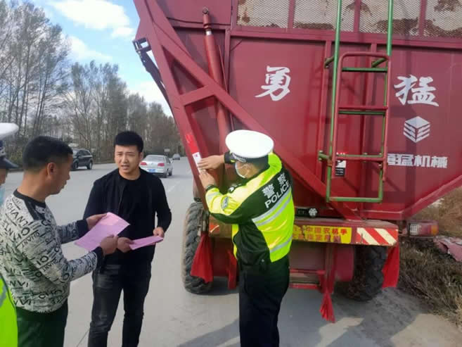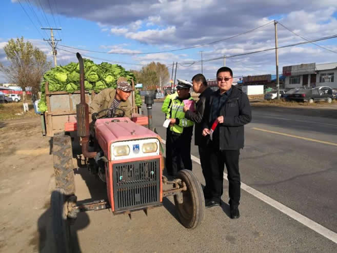 當前正值秋收冬儲農(nóng)忙季節(jié),各類農(nóng)用車、拖拉機、農(nóng)用機械上路行駛增多,農(nóng)村地區(qū)道路交通安全隱患集中顯現(xiàn)。為進一步加強農(nóng)村道路交通安全管理工作,有效預防和減少道路交通事故的發(fā)生,肇東交警大隊聯(lián)合市交通執(zhí)法大隊、農(nóng)業(yè)綜合執(zhí)法大隊開展聯(lián)勤聯(lián)治行動,緊盯城鄉(xiāng)結合部、農(nóng)村公路、鄉(xiāng)鎮(zhèn)出入口等重點路段,重點整治農(nóng)用車、拖拉機違法載人,無證無牌駕駛,酒后駕駛,面包車超員,不按規(guī)定粘貼反光標識等交通違法行為,開展源頭隱患治理,確保農(nóng)村地區(qū)道路交通安全形勢平穩(wěn)有序。