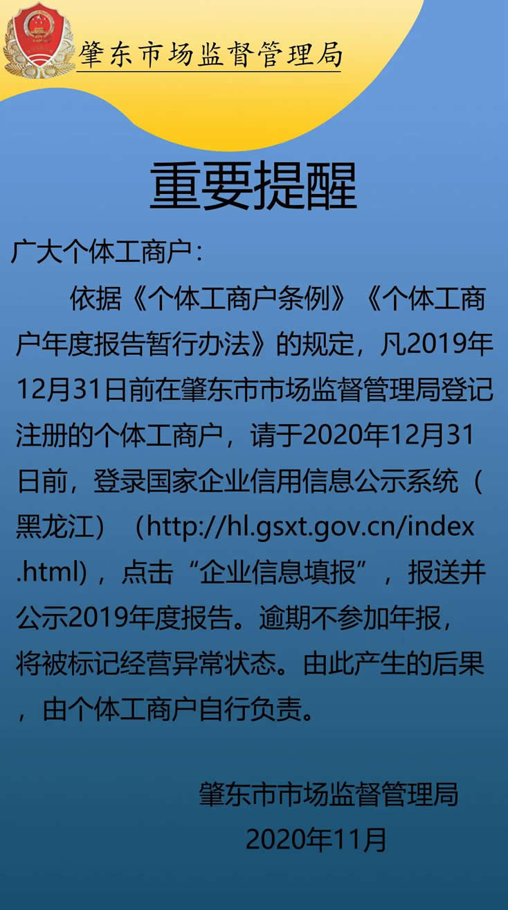 未參加年報(bào),有哪些嚴(yán)重后果?請(qǐng)看肇東市市場(chǎng)監(jiān)督管理局的重要提示: