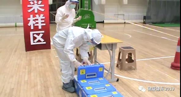 登記區(qū)運(yùn)用信息化技術(shù),使用電腦、身份證掃碼儀、掃碼槍進(jìn)行身份登記和條碼識(shí)別,使登記環(huán)節(jié)的速度大大提高。采樣區(qū)按照1:10混采方式操作,每采樣一人按照七部洗手法進(jìn)行消毒一次,一人采樣,一人收儲(chǔ)。兩組采樣隊(duì)通道使用隔離帶進(jìn)行間隔,登記區(qū)與采樣區(qū)11米距離,中間用一米黃線間隔,居民在等候區(qū)綠色地標(biāo)帶處等候,由民警站崗維持順序,等候區(qū)外的居民秩序由小社區(qū)干部佩戴疫情防控工作人員的紅色袖標(biāo)站崗維持秩序。居民進(jìn)入登記區(qū)后腳踏在黃色隔離帶上,保證間隔距離,進(jìn)出兩個(gè)通道,現(xiàn)場(chǎng)秩序井然,當(dāng)所有采集任務(wù)結(jié)束后,人民醫(yī)院和第一醫(yī)院的轉(zhuǎn)運(yùn)人員分別把標(biāo)本轉(zhuǎn)運(yùn)箱送至等候在體育館外的本單位負(fù)壓救護(hù)車上,人員清場(chǎng)之后,疾控部門的消殺人員對(duì)現(xiàn)場(chǎng)進(jìn)行了消殺處理,整個(gè)演練過程進(jìn)行了2個(gè)小時(shí)。之后參加演練的單位召開會(huì)議,進(jìn)行了總結(jié),對(duì)發(fā)現(xiàn)的問題提出了整改意見,為我市下步全員核酸采集起到了很好的示范作用。