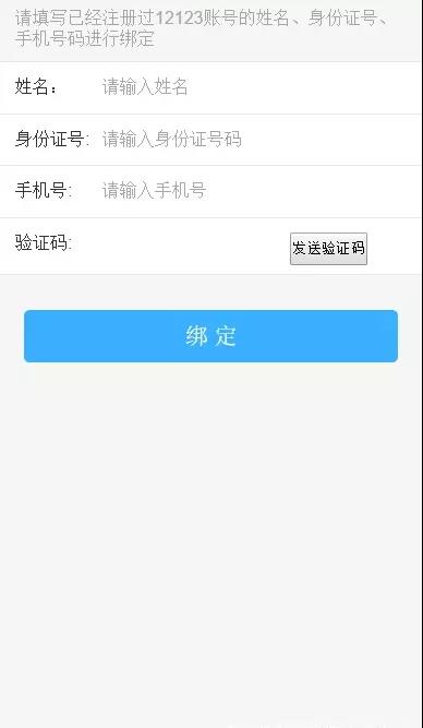 如沒有綁定直接跳轉(zhuǎn)到綁定頁面,輸入相關(guān)信息進行綁定即可,沒有12123用戶直接注冊。