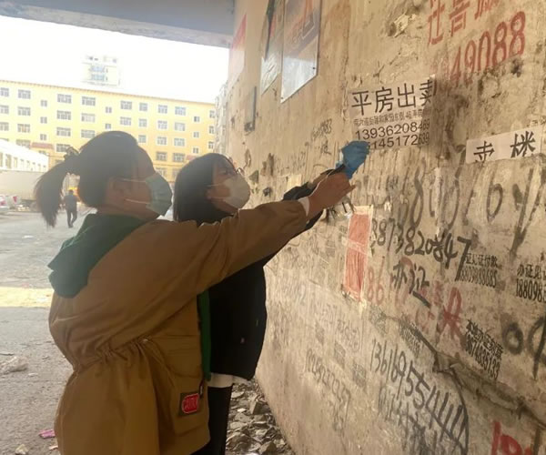 這次活動(dòng)雖小,卻體現(xiàn)著婦聯(lián)干部的為民情懷。由于小廣告的數(shù)量太多而且粘的太牢,給清理工作帶來(lái)了一定的難度,志愿者只能用水噴灑在上面,再用小鏟進(jìn)行清理,由于天氣還沒(méi)有完全回暖,依然很冷,志愿者們卻沒(méi)有抱怨,都積極投入工作,大約兩個(gè)小時(shí)才將指定廣告清理完畢。