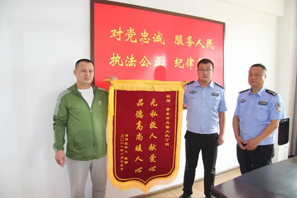 8月16日,肇東市民苗建臣的家人來(lái)到肇東市公安局交警大隊(duì),送來(lái)一面印有“無(wú)私救人獻(xiàn)愛(ài)心,品德高尚暖人心”的錦旗,對(duì)輔警丁銳熱心救助其父親的行為表示由衷的感謝。