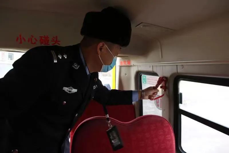 在校車安全大檢查中,交通、交警聯(lián)合執(zhí)法人員對校車進行了安全檢查,核對相應(yīng)手續(xù)是否齊全、是否符合安全運行條件,檢查車輛維護保養(yǎng)等情況,并叮囑駕駛?cè)艘?jǐn)慎駕駛,時刻把安全放在第一位。整改胎花較淺,應(yīng)急藥品不全等隱患兩項。