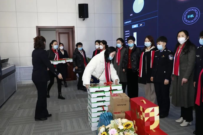 3月8日上午,肇東市婦聯(lián)主席羅瑩瑩帶領(lǐng)市女企業(yè)家商會會長羅瑞敏等相關(guān)工作人員一行,到肇東市公安局情指中心看望慰問女民警,送去鮮花和慰問品,表達節(jié)日祝福。市公安局黨委委員、政治處主任劉偉峰參加慰問。