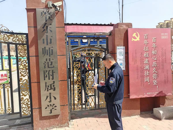 校園及周邊安全事關(guān)千家萬(wàn)戶,肇東市公安局按照“護(hù)校安園”工作要求,為做好轄區(qū)校園周邊綜合治理工作,組織民輔警紛紛進(jìn)校入園,排風(fēng)險(xiǎn)、查隱患、宣防范、凈環(huán)境,從嚴(yán)從細(xì)從實(shí)抓好校園防風(fēng)險(xiǎn)、保安全、護(hù)穩(wěn)定各項(xiàng)措施,進(jìn)一步夯實(shí)校園安全基礎(chǔ),全" />