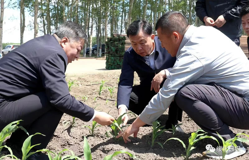 張寶偉首先來到五里明鎮(zhèn)東升村示范田現(xiàn)場,與肇東市、相關(guān)部門和農(nóng)機合作社負(fù)責(zé)同志交流,詳細(xì)了解玉米大壟雙行、土地流轉(zhuǎn)、糧食產(chǎn)量等情況,對合作社與中國農(nóng)業(yè)大學(xué)在技術(shù)合作,提高糧食產(chǎn)量等方面給予充分肯定。他強調(diào),要深入學(xué)習(xí)習(xí)近平總書記關(guān)于“三農(nóng)”工作的重要論述,落實好國家新一輪千億斤糧食產(chǎn)能提升行動要求,加快實施高標(biāo)準(zhǔn)農(nóng)田建設(shè),大力發(fā)展科技農(nóng)業(yè)、綠色農(nóng)業(yè)、質(zhì)量農(nóng)業(yè)、品牌農(nóng)業(yè),堅持走好科技種田助農(nóng)增效路子。要強化示范引領(lǐng),突出典型帶動,通過良田、良種、良法、良機、良制推進(jìn)全市糧食高產(chǎn)高效,努力爭當(dāng)農(nóng)業(yè)現(xiàn)代化建設(shè)排頭兵。