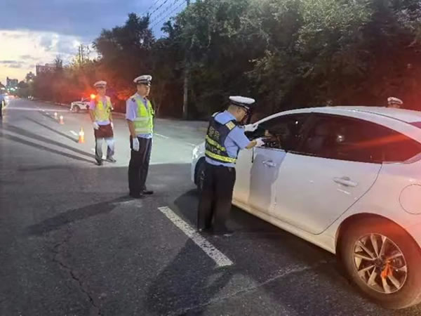 為深入推進“法治公安建設年”活動,強化夏季道路交通安全管理,整治城市交通違法犯罪行為,持續(xù)保持對酒駕、醉駕等違法行為的高壓整治態(tài)勢。7月30日,肇東公安交警突擊開展酒醉駕夜查行動,全力預防涉酒道路交通事故發(fā)生,進一步凈化轄區(qū)道路交通" />