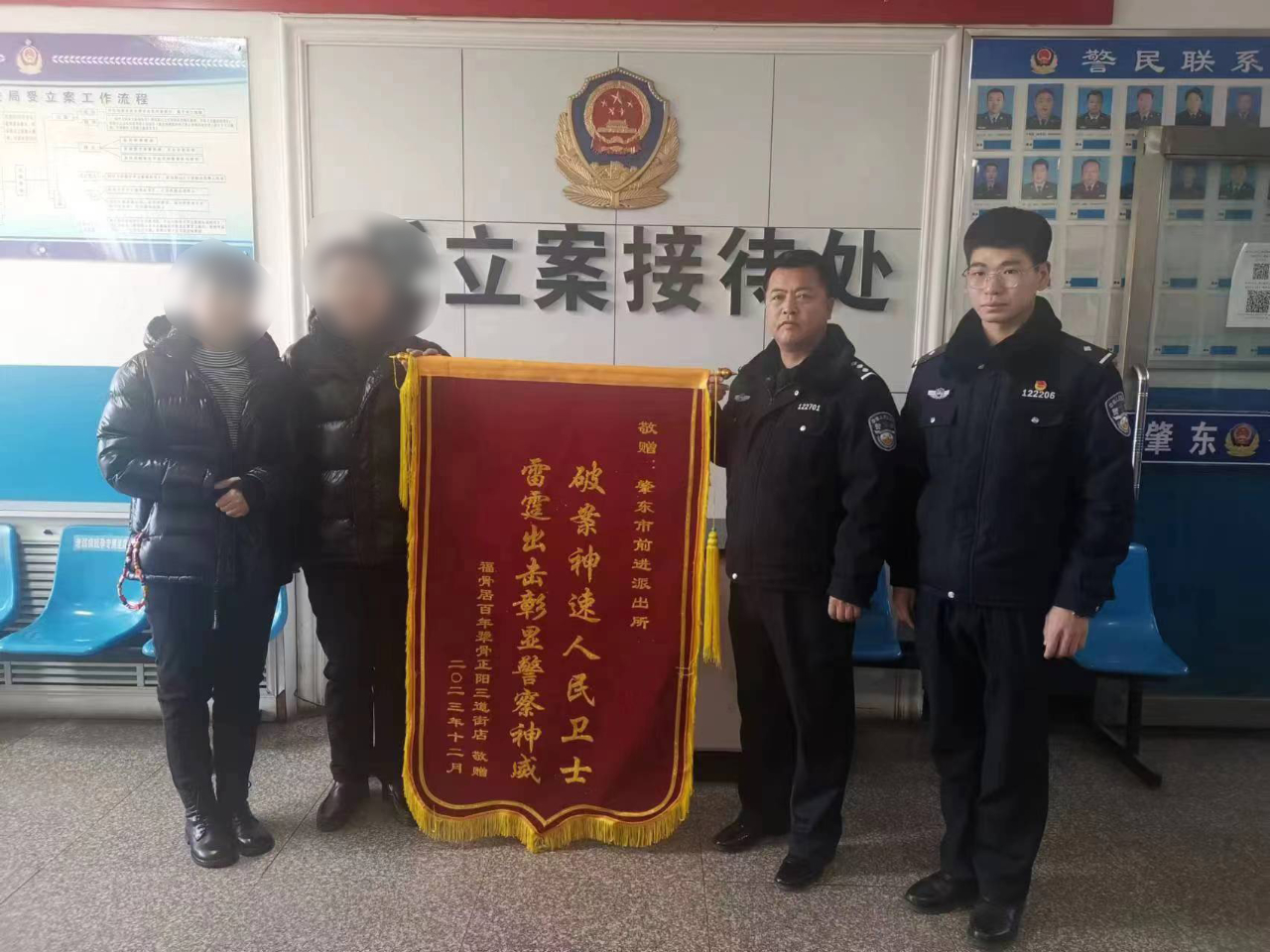 “警察同志,真的太感謝你們了......”12月11日上午,一面印有“破案神速人民衛(wèi)士 雷霆出擊彰顯警察神威”的錦旗送到肇東市公安局前進(jìn)派出所民警手中,對民警快速破獲盜竊案,為其挽回?fù)p失表示感謝。