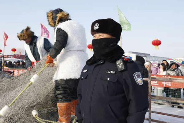 肇東公安護(hù)航“冬捕漁獵文化節(jié)”