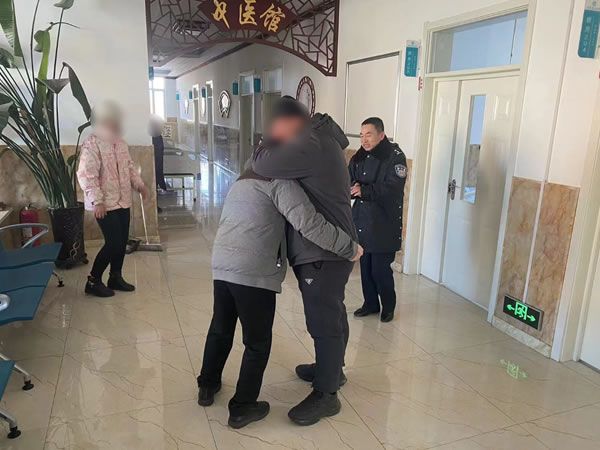 2月26日早上7時(shí)許,五站派出所值班民警接五站鎮(zhèn)東安村村民安某報(bào)警稱,在五站鎮(zhèn)東安村道口發(fā)現(xiàn)一人躺在路邊溝里,生死不明。民警立即出警,在五站鎮(zhèn)301國(guó)道與東安村路交叉口南側(cè)溝里發(fā)現(xiàn)一女子躺在樹下,經(jīng)詢問該人神志清醒,生命體征尚好,但由于受凍時(shí)間較久,無法說明姓名、地址及家人情況,手機(jī)關(guān)機(jī)狀態(tài),民警立即將該女子送往五站鎮(zhèn)衛(wèi)生院緊急救治。隨即民警通過僅有的信息查詢到該女子名叫呂某軍,戶籍地址為五大連池市四平鄉(xiāng)某村居民。民警聯(lián)系到其父親呂某利,呂某利稱女兒患有抑郁癥,于2024年2月25日走失,全家人正在四處尋找呂某,正不知所措時(shí)接到民警電話,呂某利和女子丈夫王某看到呂某安然無恙,已經(jīng)脫離險(xiǎn)境時(shí),不勝感激,抱頭痛哭。家人對(duì)民警的救助行為表示萬分感謝,并表示將在今后加強(qiáng)關(guān)心照顧,避免再次走失,隨即該女子被其家人接回。
