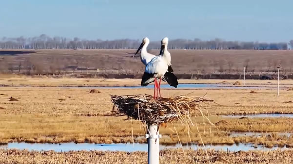 東方白鸛是國(guó)家一級(jí)保護(hù)動(dòng)物,該物種已被列入《國(guó)家保護(hù)的有益的或者有重要經(jīng)濟(jì)、科學(xué)研究?jī)r(jià)值的陸生野生動(dòng)物名錄》。由于東方白鸛性情機(jī)警而膽怯,且現(xiàn)在為筑巢期,更是害怕驚擾,所以記者只能在濕地工作人員的引導(dǎo)下通過無(wú)人機(jī)遠(yuǎn)遠(yuǎn)的拍下他們優(yōu)雅美麗的身影,今年濕地東方白鸛數(shù)量的大幅增加無(wú)疑是對(duì)該區(qū)域生態(tài)環(huán)境的極大信任和認(rèn)可。