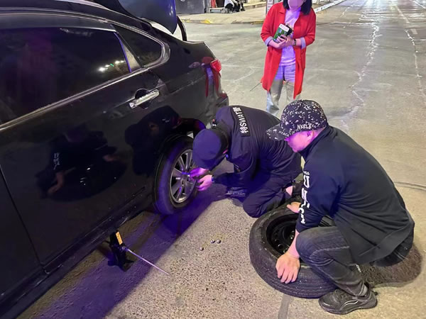 肇東公安:夜間行車輪胎被扎 民警化身“修車工”解民困!