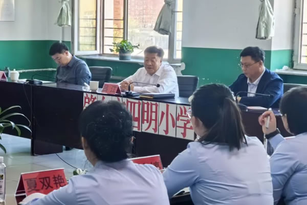 座談中,四明小學黨支部書記、校長董潤生對學;厩闆r做了匯報,并感謝領(lǐng)導對教育工作的關(guān)懷和支持。