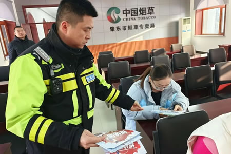 為進一步落實“冬季行動”工作部署,消除冬季交通安全隱患,最大限度地減少道路交通事故的發(fā)生。肇東市公安局交警大隊于近日,深入到轄區(qū)煙草專賣局開展冬季交通安全宣傳教育活動。