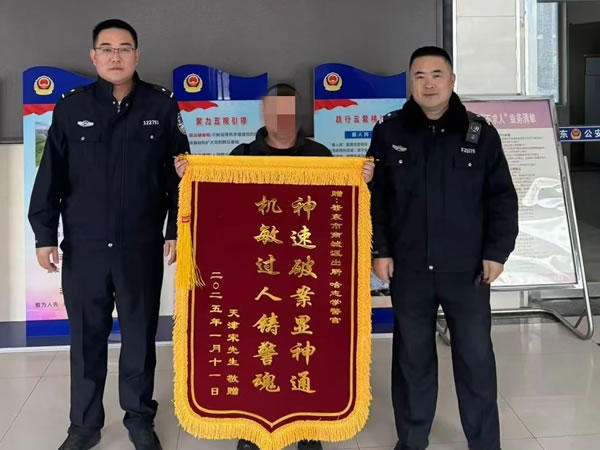 冬季行動開展以來,肇東公安始終秉持“以人民為中心”的工作理念,將群眾利益放在首位,著力解決群眾的“急難愁盼”,全力維護社會的安定和諧。近日,南城派出所民警成功幫助外地游客找回遺失手機,獲得了外地游客的高度贊揚,并于第二天將一面繡有“神速破案顯神通,機敏過人鑄警魂”的錦旗送到南城派出所。