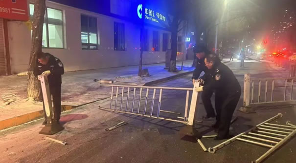 1月28日除夕當天,肇東市迎來大范圍低溫降雪,低溫降雪導致城區(qū)路段有結(jié)冰現(xiàn)象發(fā)生,過往車輛時常發(fā)生打滑失控,撞上馬路中間的護欄,變形、倒地的破損護欄嚴重影響車輛及群眾的出行安全。肇東市公安局奮斗派出所民輔警巡邏至八道街建設(shè)銀行路口時,發(fā)現(xiàn)路口中間的隔離護欄被撞壞,過往車輛紛紛避讓,影響正常的道路通行,加之天黑,稍不留神,極易造成安全事故,存在很大的安全隱患。見此情景,民警劉長軍、吳復生、王,、輔警邵建壹迅速來到事發(fā)現(xiàn)場,及時將撞壞的護欄扶正擺好,把護欄移至原位,同時指揮過往車輛完全通行。經(jīng)過民警二十多分鐘的精心維護,終于把斷裂護欄修好歸位,保證了車輛行人的通行安全,受到了過往司機朋友的點贊。