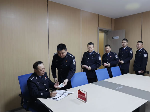 在規(guī)定動作環(huán)節(jié),黨員民警統(tǒng)一著裝,莊重地將黨員徽章正佩戴在胸前,熠熠生輝的徽章,宛如心中信仰的映照。大家依次走到簽到桌前,鄭重地在簽到簿上簽下自己的名字。全體黨員整齊列隊,黨支部書記宋艷東以堅定且洪亮的聲音領誦誓詞,全體黨員面向黨旗重溫入黨誓詞、齊聲誦讀黨章,一字一句、清晰有力,在空中久久回蕩。接著,黨員們自覺足額交納黨費,簡單卻意義非凡的舉動,體現(xiàn)了黨員對黨組織的無限忠誠。在政治理論學習中,黨支部書記詳細解讀規(guī)定內容,黨員民警們認真聆聽,深刻領會中央八項規(guī)定精神的內涵與實質。