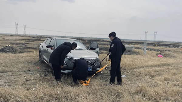 事發(fā)當(dāng)日,宋站派出所接到一位外地司機(jī)的緊急求助電話。電話中,司機(jī)聲音焦急,稱自己對當(dāng)?shù)芈窙r不熟悉,車輛不慎陷入野地,無法動彈,周圍荒無人煙,自己孤立無援。接警后,民警張臨深知情況緊急,立即帶領(lǐng)新警張藝超、韓旭、趙明睿,攜帶救援工具迅速趕赴現(xiàn)場。