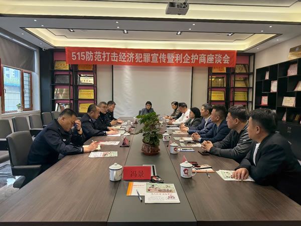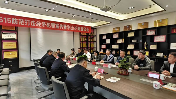 為了進(jìn)一步推進(jìn)宣傳活動,副局長武立志帶領(lǐng)經(jīng)偵大隊民輔警與市工商聯(lián)召開“5.15”防范打擊經(jīng)濟犯罪宣傳利企護商座談會,會上武立志同經(jīng)偵民警圍繞如何保護企業(yè)權(quán)益、護航企業(yè)發(fā)展,堅持源頭防范侵害企業(yè)的經(jīng)濟犯罪,動態(tài)聯(lián)合企業(yè)進(jìn)行預(yù)警,同時經(jīng)偵民警對企業(yè)提出的關(guān)于經(jīng)濟犯罪的疑問一一進(jìn)行解答,并為企業(yè)講解了非法集資、組織、領(lǐng)導(dǎo)傳銷、職位侵占、合同詐騙等經(jīng)濟犯罪的典型案例,對作案手法、作案特點進(jìn)行了詳細(xì)的講解,提高企業(yè)對經(jīng)濟犯罪的防范能力,從根本上遏制經(jīng)濟犯罪的發(fā)生。