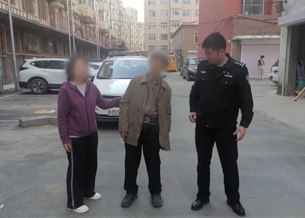 接警后,尚家派出所工作人員立即出警,到現(xiàn)場后,發(fā)現(xiàn)老人已被路過的好心人攙扶到路邊,上前詢問老人情況,老人語言不清,說不清情況,身上的定位器電量耗盡。派出所工作人員王立濤、李海洋將老人攙扶到警車?yán),詢問老人家庭情況及住址,老人耳聾,多次詢問后,老人說自己叫董道良,自己二兒子叫董平,現(xiàn)在已退休,自己在肇東市林業(yè)局樓居住,王立濤、李海洋駕車將老人送到肇東市八道街林業(yè)局家屬樓,經(jīng)向樓區(qū)住戶詢問,稱老人在四單元401室居住,李海洋邊上樓敲開401室的房門,詢問是否有老人走失時,老人的兒媳激動的說有有,我公公早上去公園溜達時,一直沒有回家,放在身上的定位器停止工作,家里人都急壞了,一直尋找沒有找到,正準(zhǔn)備打電話報警求助,聽到派出所工作人員將老人送回來了,兒媳快步來到樓下,來到公公身邊,對派出所工作人員 一個勁的表示感謝,嘴里說著,謝謝你們了,真的太感謝了!看見老人安全到家了,囑咐完家屬后,王立濤、李海洋駕車默默的離開,車后面的老人兒媳還一直揮著手送別。