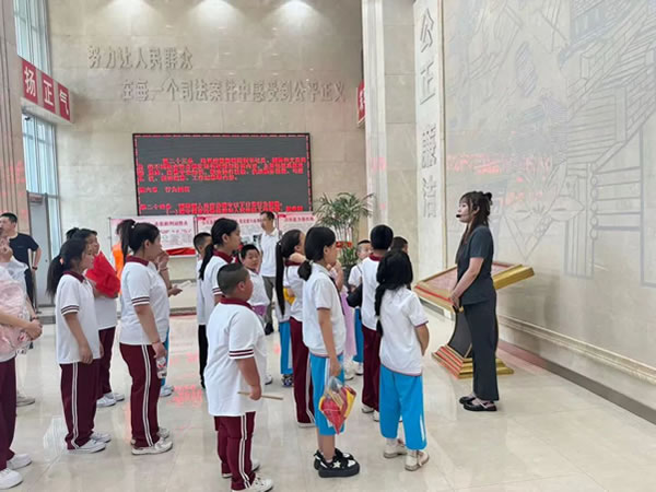 活動(dòng)當(dāng)日,陽光明媚,在“愛心媽媽”的陪伴下,肇東市新立小學(xué)的學(xué)生們滿懷好奇與期待踏入法院的大門。在解說員的引導(dǎo)下,大家有序參觀了訴訟服務(wù)中心、科技法庭、羈押室等場所,直觀感受到司法便民的舉措。走進(jìn)莊嚴(yán)的審判法庭,看到高懸的國徽、威嚴(yán)的法臺,同學(xué)們深刻體會到法律的神圣與莊重。觸摸法槌、親身體驗(yàn)法官、檢察官、辯護(hù)人等角色,讓大家興奮不已,也對司法工作有了更直觀的認(rèn)識。在參觀過程中,“愛心媽媽”們始終陪伴在同學(xué)們身邊,細(xì)心地提醒大家注意安全,輕聲解答同學(xué)們的疑問,眼神中滿是關(guān)切與愛護(hù)。