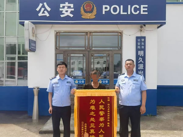 看到孫子平安歸來,紀(jì)先生眼含淚花不停地向民警道謝:“感謝警察同志幫我找回孩子,謝謝你們,謝謝你們!”6月15日,紀(jì)先生專門將一面印有“人民警察為人民,為難之處見真情”的錦旗送到明久鄉(xiāng)派出所,表達(dá)對(duì)民警的感激之情。