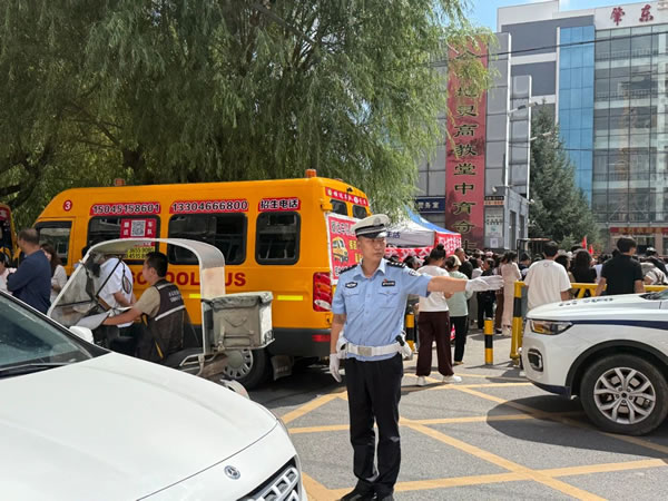 開學當日,護學崗民警提前到崗到位,在學校門口及周邊重點路段疏導交通,引導接送學生車輛有序停放,避免交通擁堵,確保學生安全、快速出入校園。在護學過程中,護學崗民警加強與學校安保人員的溝通協(xié)作,指導學校安保人員嚴格落實校園門禁制度,確保校園內(nèi)部安全;同步開展安全宣傳教育,提醒學生遵守交通規(guī)則,注意自身安全。