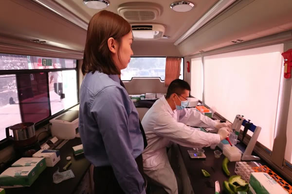 在快速檢測服務(wù)環(huán)節(jié),市場監(jiān)管人員現(xiàn)場對消費者剛購買的蔬菜、水果等農(nóng)產(chǎn)品進(jìn)行農(nóng)藥殘留等項目免費快檢,讓消費者"零距離"感受食品安全保障,增強(qiáng)了消費信心。