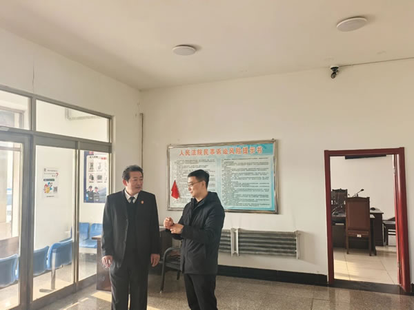 為深入貫徹落實(shí)總體國(guó)家安全觀和新時(shí)代政法工作要求,切實(shí)筑牢鄉(xiāng)鎮(zhèn)法庭安全防線,按照院黨組統(tǒng)一部署,11月21日、26日,黨組副書(shū)記、副院長(zhǎng)常文沫帶領(lǐng)辦公室及法警隊(duì)相關(guān)工作人員,對(duì)院內(nèi)派出共計(jì)8個(gè)鄉(xiāng)鎮(zhèn)法庭開(kāi)展年度安全隱患排查工作,全面檢" />