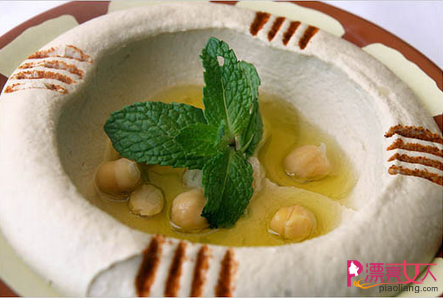 、 鷹嘴豆泡發(fā)加稍蓋過的水,用電飯煲普通米飯鐺做熟。熟鷹嘴豆、植物油約1茶匙、芝麻醬2湯匙、兩個(gè)檸檬的汁、鹽少許、豆醬1湯匙放入料理機(jī)內(nèi);加入干歐芹碎1茶匙和適量水,用料理機(jī)中檔打成粗豆泥;