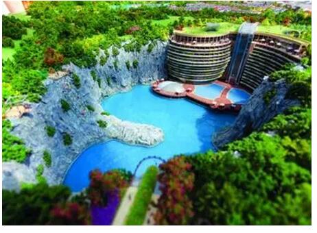 這個深坑是解放前日本侵略者的采石場,現(xiàn)由迪拜帆船酒店設(shè)計師設(shè)計變成了美輪美奐的深坑酒店!酒店配備水下情景套房、空中花園、壯觀瀑布等,預(yù)計明年上半年開業(yè)!