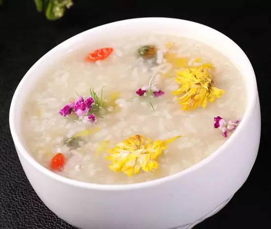 材料:菊花15克,粳米100克,將菊花洗凈,粳米淘洗干凈;菊花、粳米放鍋中,加適量清水,加蓋,旺火煮沸,再文火熬至成粥即可。