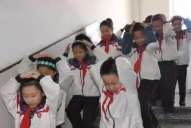 隨著警報(bào)聲響起, 地震應(yīng)急演練在校園內(nèi)拉開了帷幕,各班同學(xué)在班主任和科任教師的組織下,不慌不亂的頭對(duì)頭地蹲在課桌底下,手扶桌腿,接著同學(xué)們迅速向課桌中間的空位置靠攏,站成3路, 分成2路縱隊(duì)快速而有序地分別從教室前后門跑出教室,跑到操場(chǎng)指定地點(diǎn),各班迅速清點(diǎn)學(xué)生數(shù)并向校領(lǐng)導(dǎo)匯報(bào)情況,歷時(shí)1分45秒。