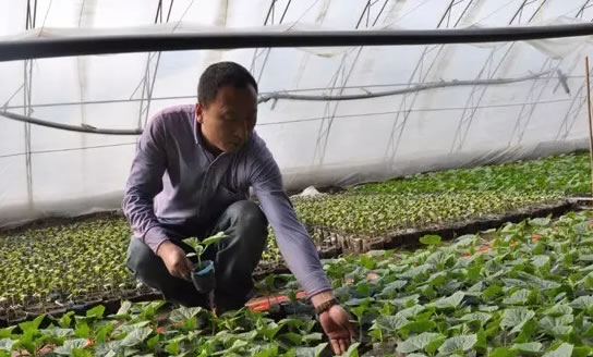 近日,肇東市五站鎮(zhèn)綠園農(nóng)業(yè)生態(tài)種植園技術(shù)員李曉峰在查看用有機(jī)質(zhì)育苗,等待移栽的黃瓜秧苗。